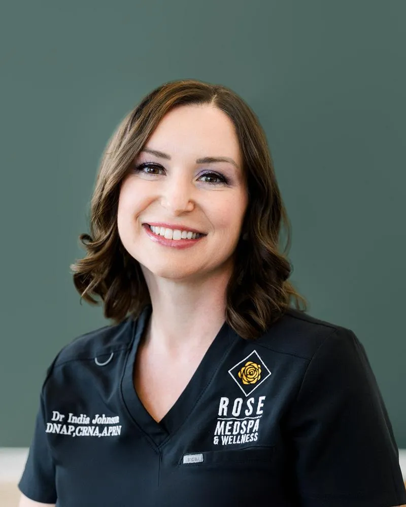 Dr. India Johnson is a Nurse Anesthesiologist with over 15 years of medical experience working in a variety of areas including Emergency Medicine and Flight Nursing, the Neonatal Intensive Care Unit (NICU), Pediatric Intensive Care Unit (PICU), Cardiothoracic Intensive Care Unit (CTICU), Medical Intensive Care Unit (MICU), Mother/Baby, and Labor and Delivery. As an Advanced Practice Nurse Practitioner (APRN) and Certified Registered Nurse Anesthesiologist (CRNA) Dr. Johnson has applied her passion for science and her desire to deliver personalized care to aesthetics and holistic wellness. When receiving care from Dr. Johnson, you will be in great hands! She resides in Troy, Illinois with her husband Eric and their four children.